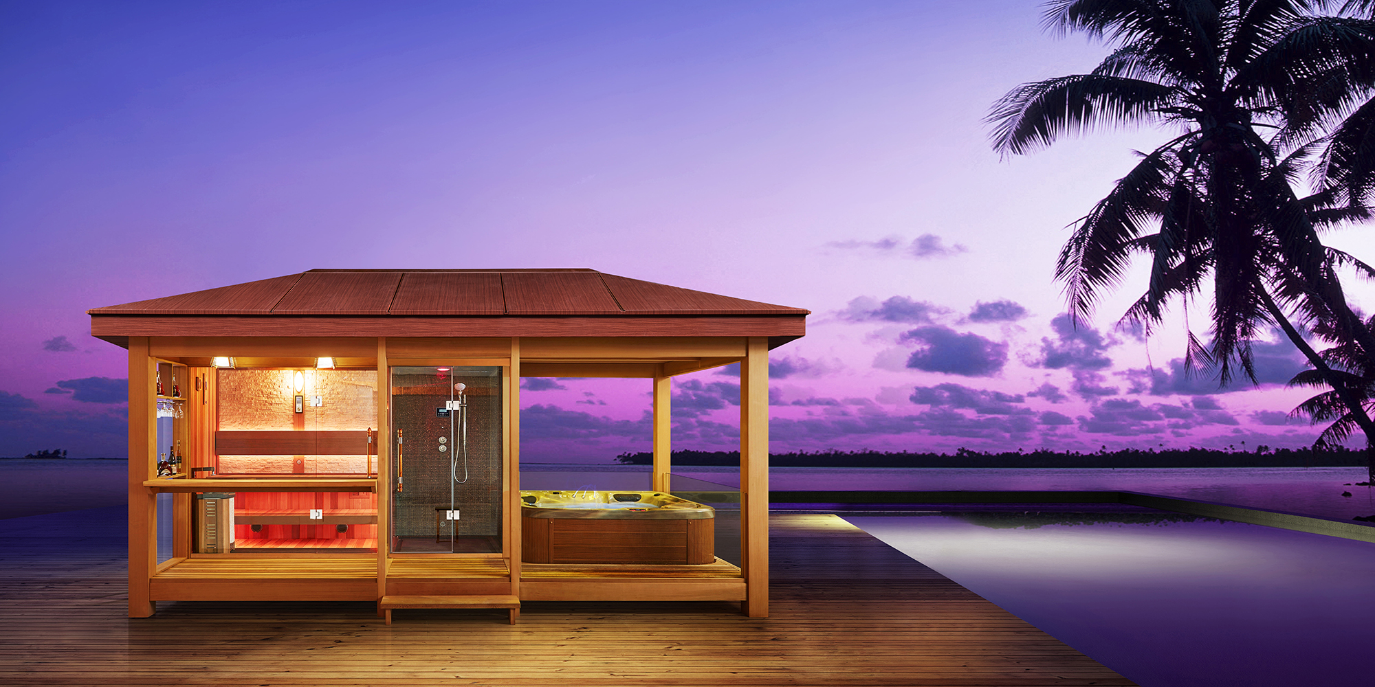 • Sauna accessoires(Thermo-Hygrmeter, Cask, Sandglass, wooden shower part(steam function):