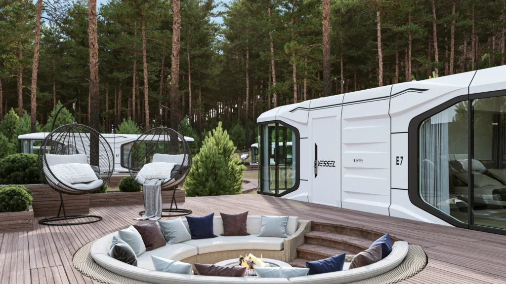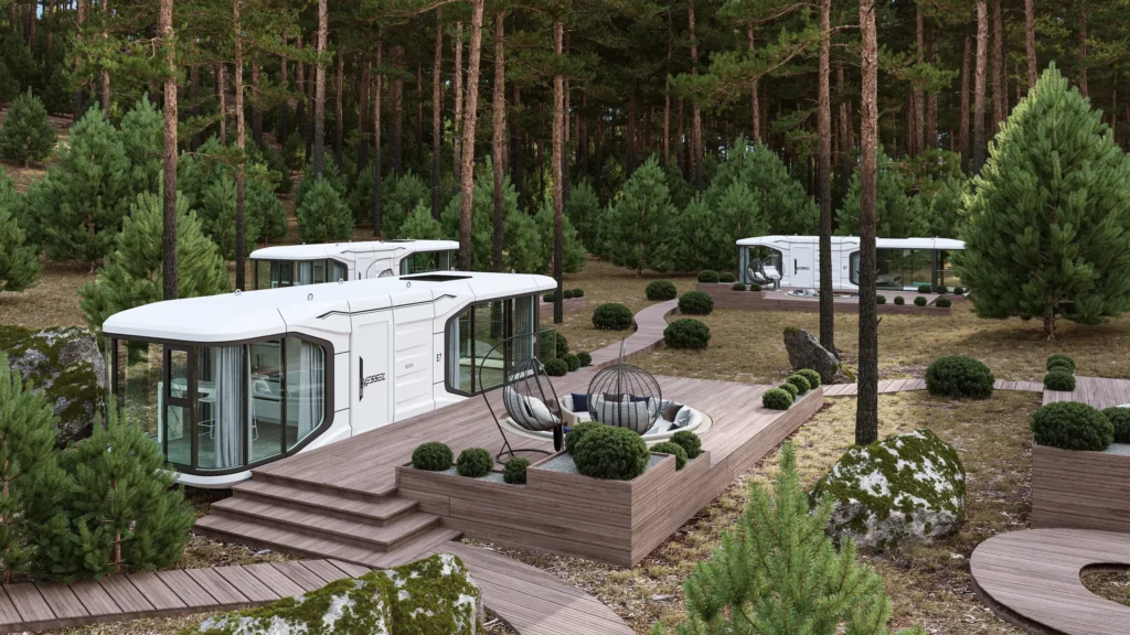 Of course, you won’t find a better view from your living space than what you get in the Massimo Modular Model E. You can escape to stunning 270-degree panoramic views through floor-to-ceiling windows, enjoy top-notch insulation, sleep under the stars or wake up to stunning sunrises, and recharge in pure natural surroundings.