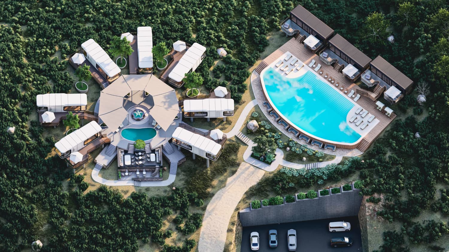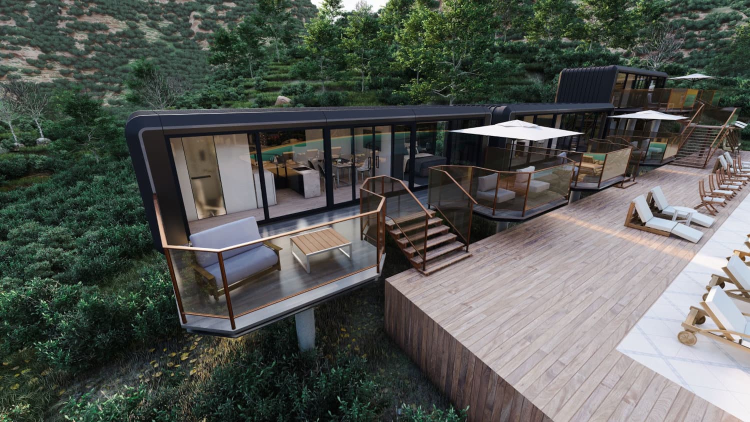 Escape to stunning 270° panoramic views through floor-to-ceiling windows, top-notch insulation, sleep under the stars or wake up to stunning sunrises, and recharge in pure natural surroundings.