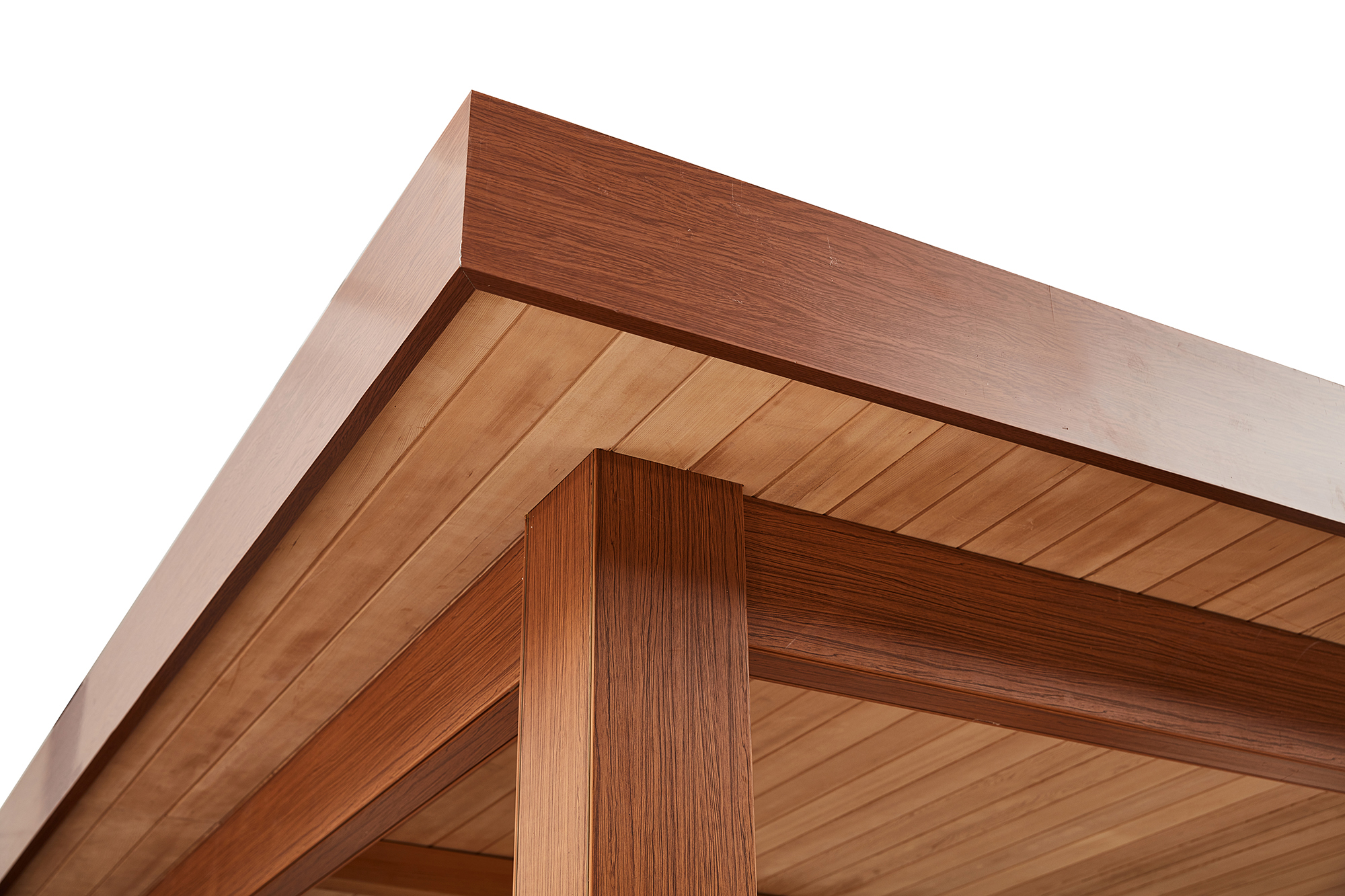 The gazebo product is truly remarkable, reflecting the pinnacle of high-end and elegant design. The wood on the surface not only appears visually stunning but is also manufactured with top-quality materials such as aluminum-plastic panels and varnished wood. This not only enhances the durability of the gazebo, but it also grants it protections against harsh outdoor conditions. The product boasts waterproofing, moisture-proofing, and sun-proofing capabilities, making it ideal for outdoor use in any type of weather.